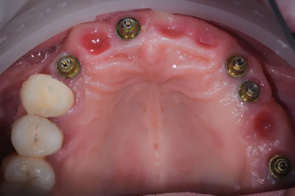 Abbiamo rimosso facilmente i vecchi impianti, sostituendoli con nuovi. Ne abbiamo aggiunti altri, facendo innesti di osso eterologo e rialzo del seno mascellare, in considerazione del fatto che avremmo dovuto poi estrarre alcuni denti non mantenibili.